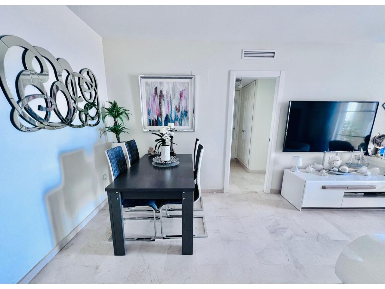 DescripciónEste piso en venta se encuentra en la segunda planta de un edificio en Bahia Golf. Con una superficie total de 99 m² y 78 m² útiles, cuenta con 1 habitación individual, 2 baños, aire acondicionado, calefacción eléctrica, cocina equipada y está en buen estado de conservación. Dispone de ascensor, plaza de parking, jardín y piscina comunitaria. Además, cuenta con sistema de seguridad, es soleado y exterior. La urbanización Golf Bahía donde está ubicado destaca por su atractivo entorno natural y buenas comunicaciones, siendo una de las zonas más valoradas . En sus alrededores se encuentran chalets y viviendas unifamiliares de alto nivel, convirtiéndola en un lugar ideal para vivir. También está cerca del campo de golf Sierra Cortina, que atrae a aficionados de este deporte desde principios del siglo XXI.